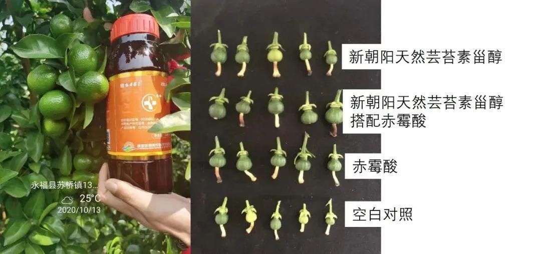 蕓苔素能夠平衡植物體內(nèi)各類激素,在植物生長的各個時期都可以起到特殊的作用,尤其是天然蕓苔素,廣泛應(yīng)用在柑橘的各個時期。蕓苔素可以增強光合效率,促進營養(yǎng)物質(zhì)的積累和轉(zhuǎn)化,提高作物產(chǎn)量,改善作物品質(zhì);提高植物體內(nèi)各種酶的活性和內(nèi)源激素的調(diào)節(jié),促進早期花芽分化,保花保果;提高作物抗逆能力,如耐寒、耐旱、耐高溫、耐澇、耐鹽堿能力;協(xié)同增效,減輕農(nóng)藥藥害及化學(xué)污染藥害。