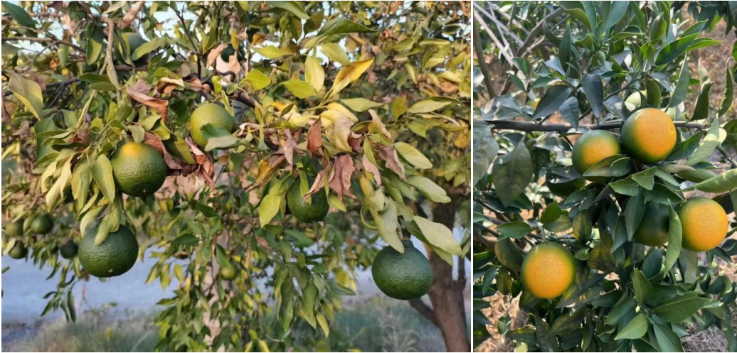由于高溫干旱,日灼果、裂果等現(xiàn)象會嚴重影響柑橘產(chǎn)量和品質(zhì),加重果農(nóng)的負擔(dān)。天然蕓苔素在柑橘果實膨大、高溫防日灼、預(yù)防裂果中扮演著重要角色。